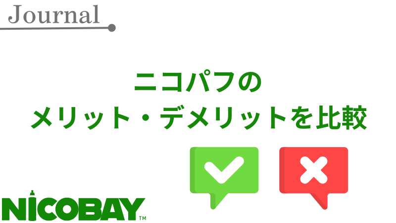 ニコパフには匂いが少なく喫煙後の残り香がないという大きなメリットがあります。また、リキッド交換や充電が不要な使い捨てタイプで、初心者でも手軽に楽しめます。