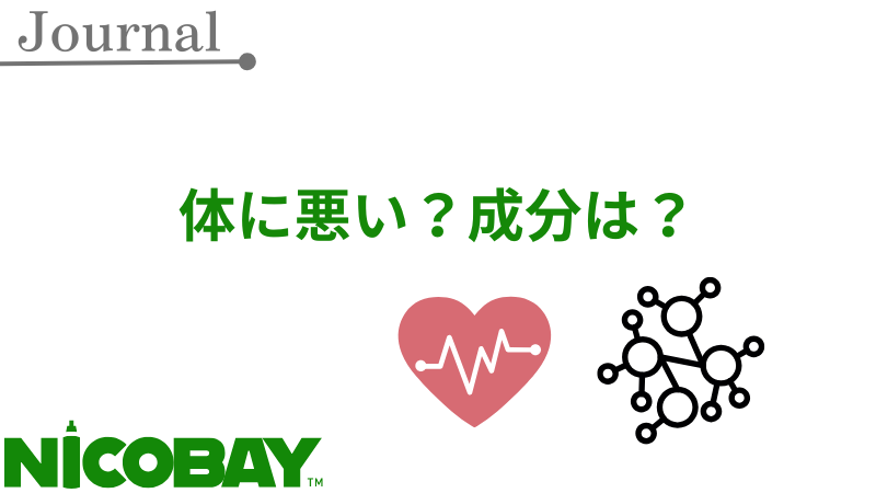 ニコパフのリキッドには、プロピレングリコール(PG)や植物性グリセリン(VG)、香料などの成分が含まれています。これらは食品や医薬品にも使用される成分で無害ですが、ニコチンを摂取するため吸いすぎには注意が必要です。