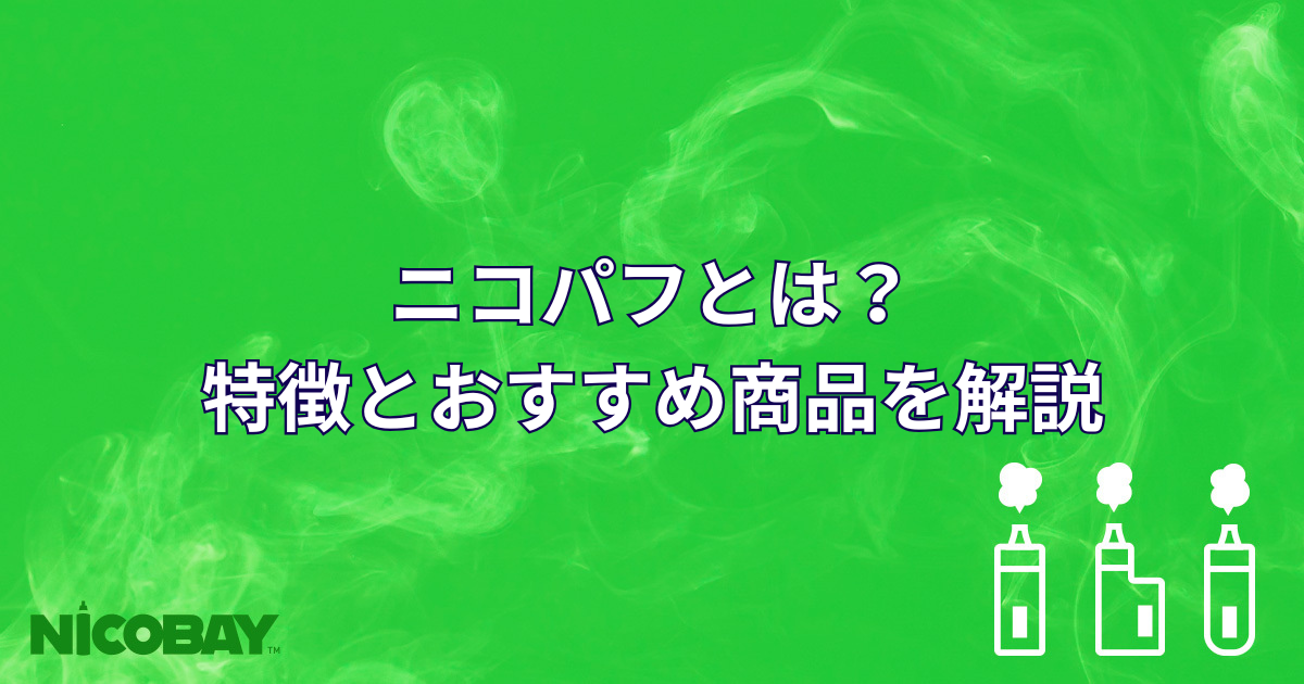 ニコパフは、ニコチン入りの使い捨て電子タバコ(ベイプ)で、喫煙後の匂いが少ない点が特徴です。